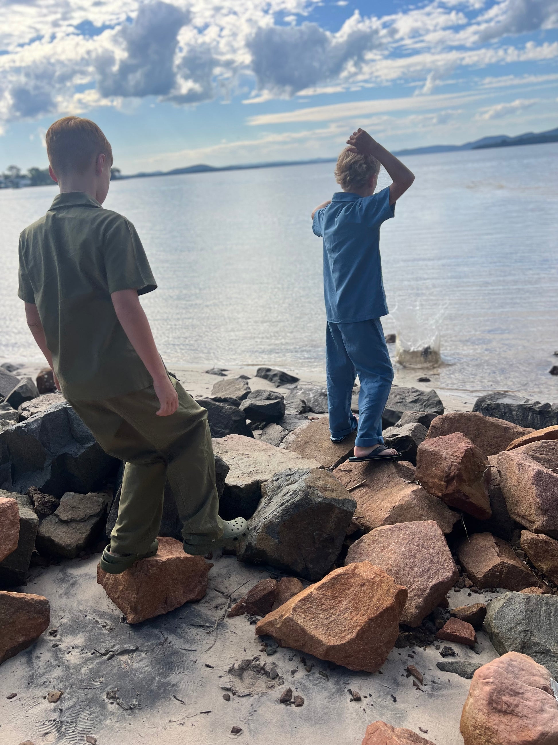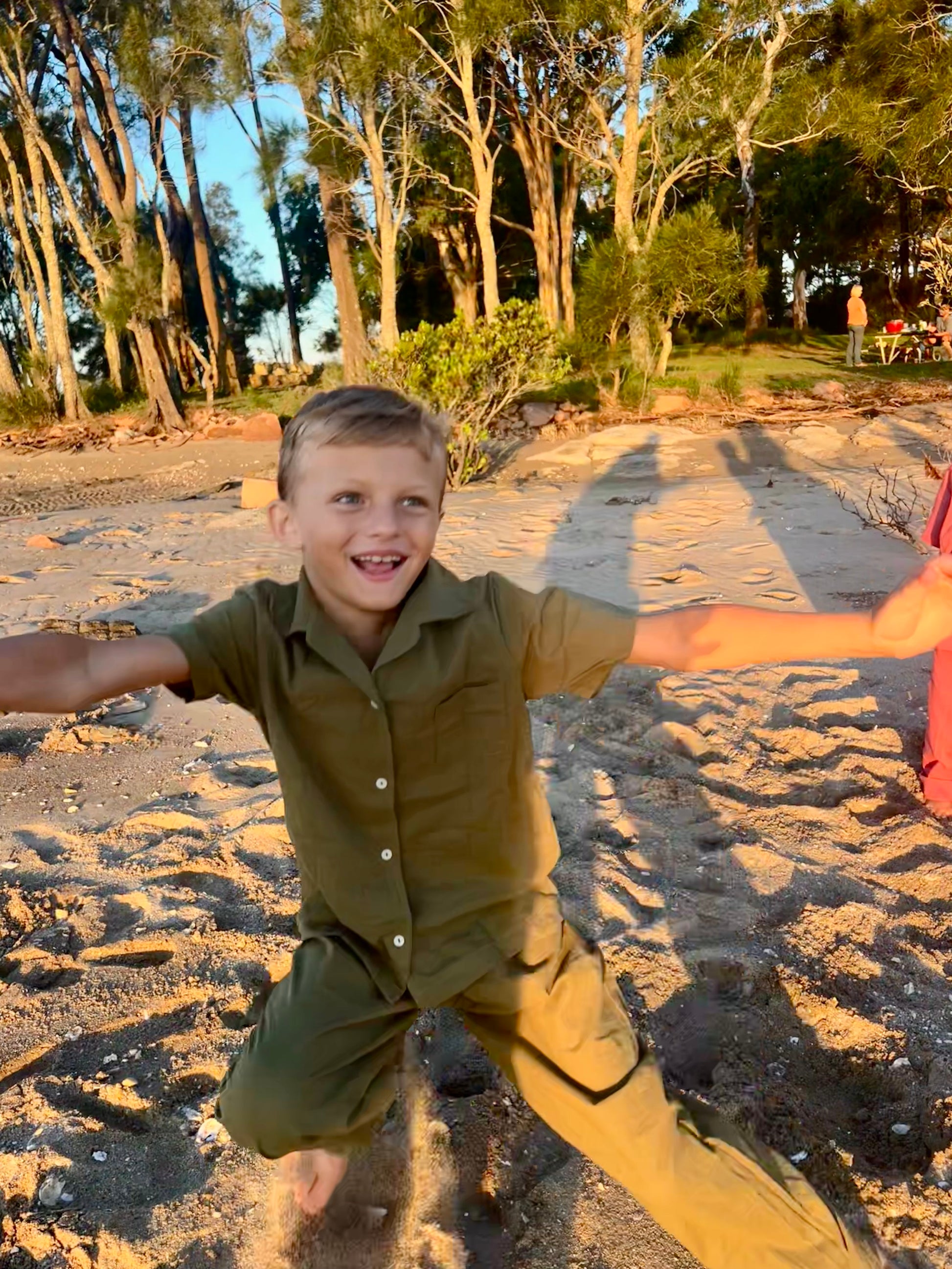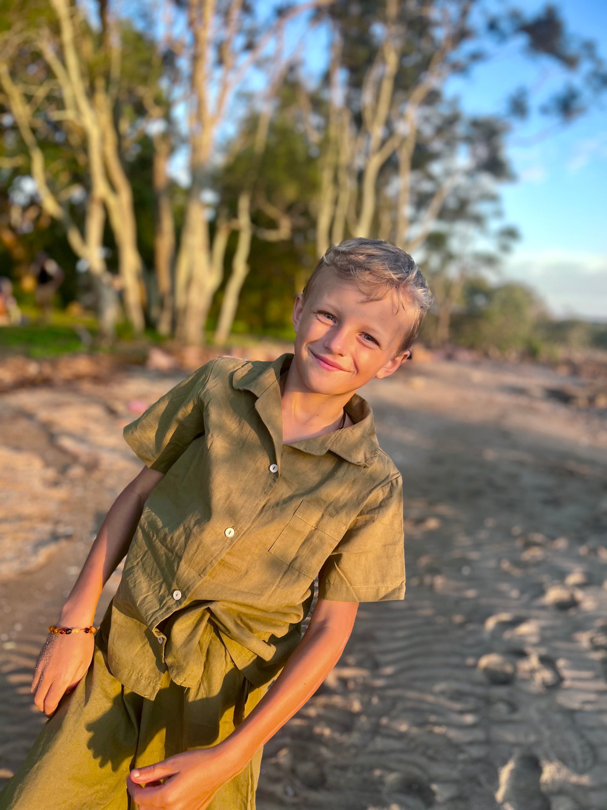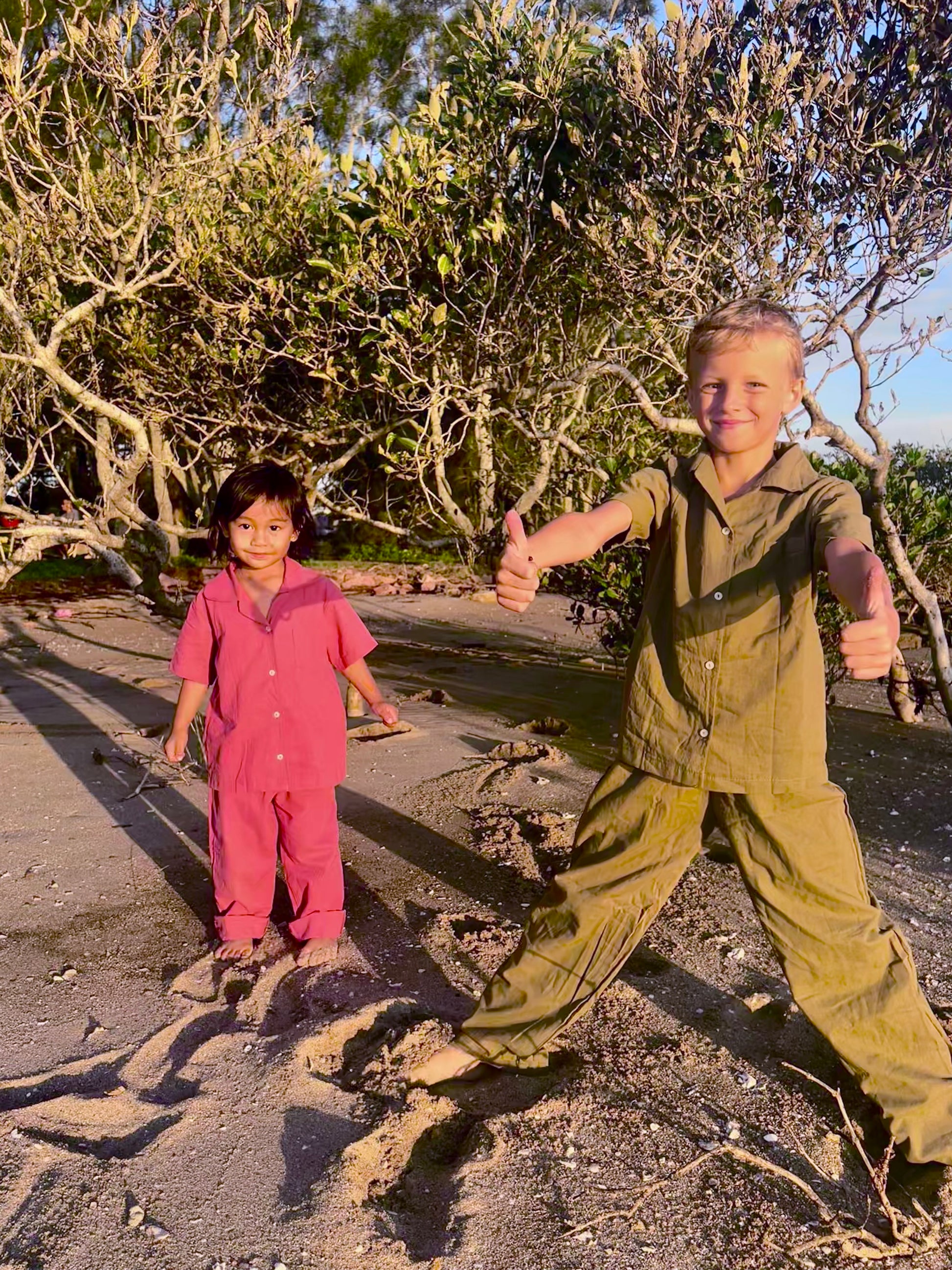 Designed for gentle days and joyful play, our signature coord set features a relaxed button-up top and comfy, elastic-waist pants. Carefully handmade using a breathable cotton-linen blend, it’s made to move with little ones from slow mornings to backyard adventures.