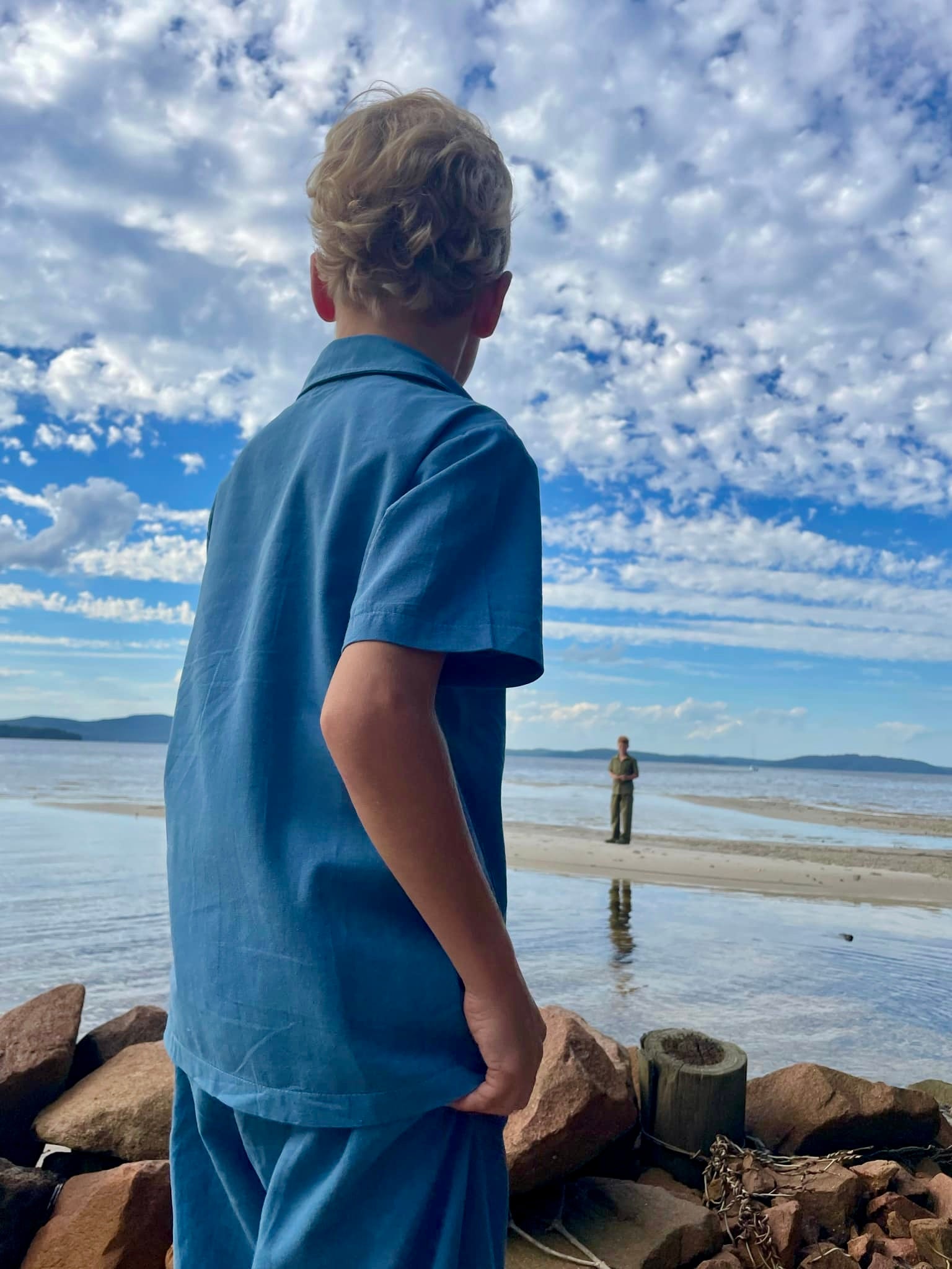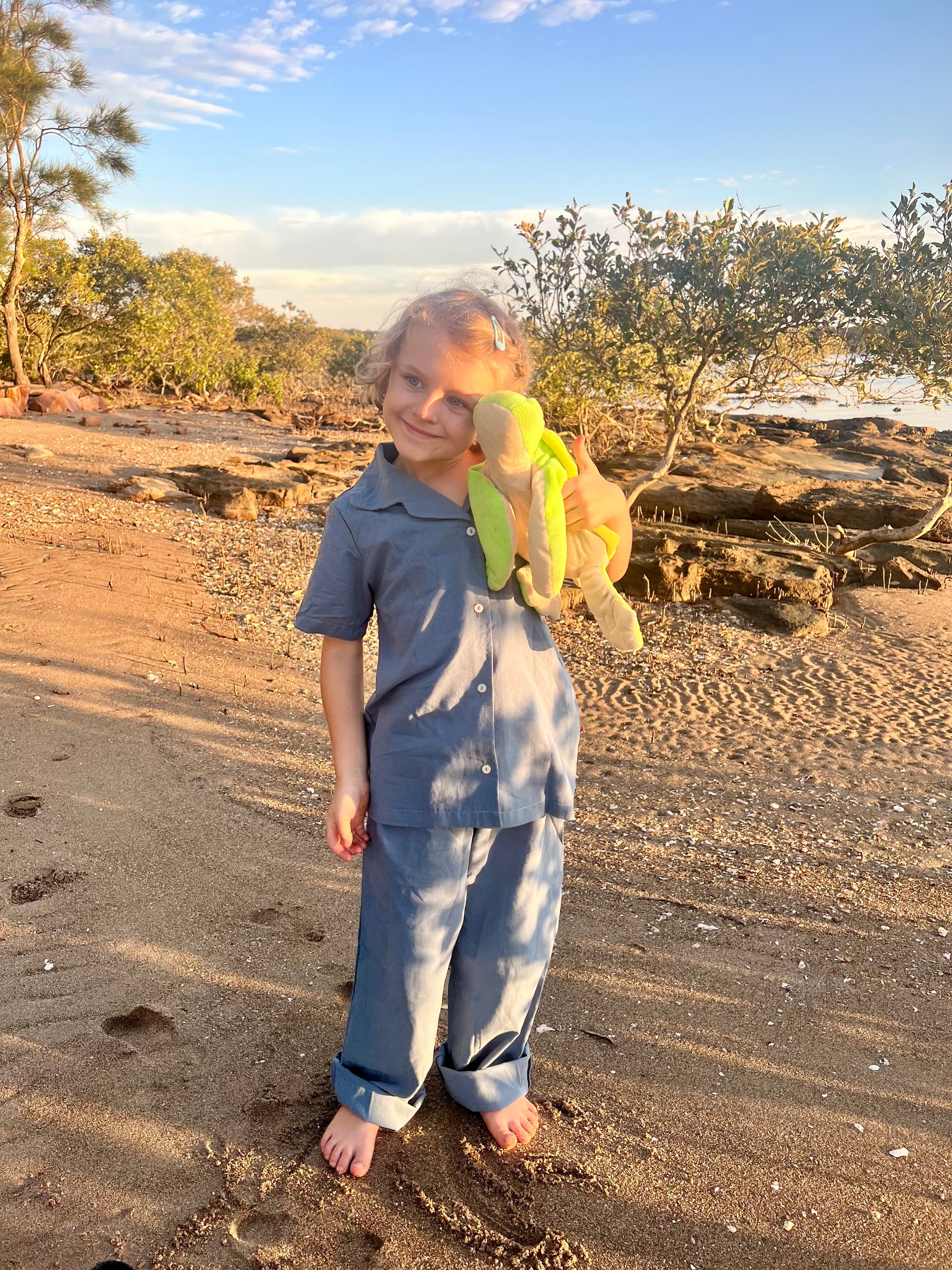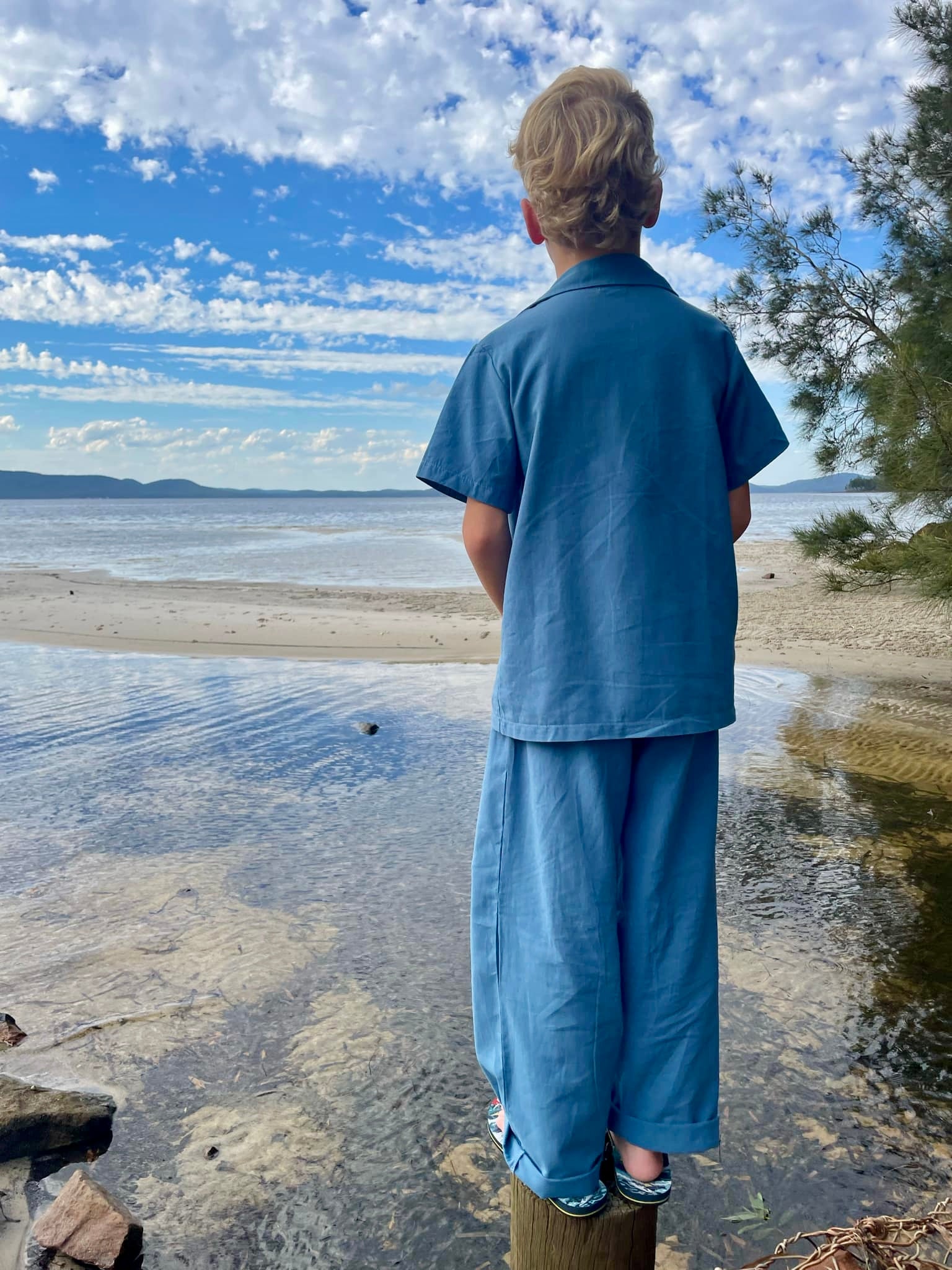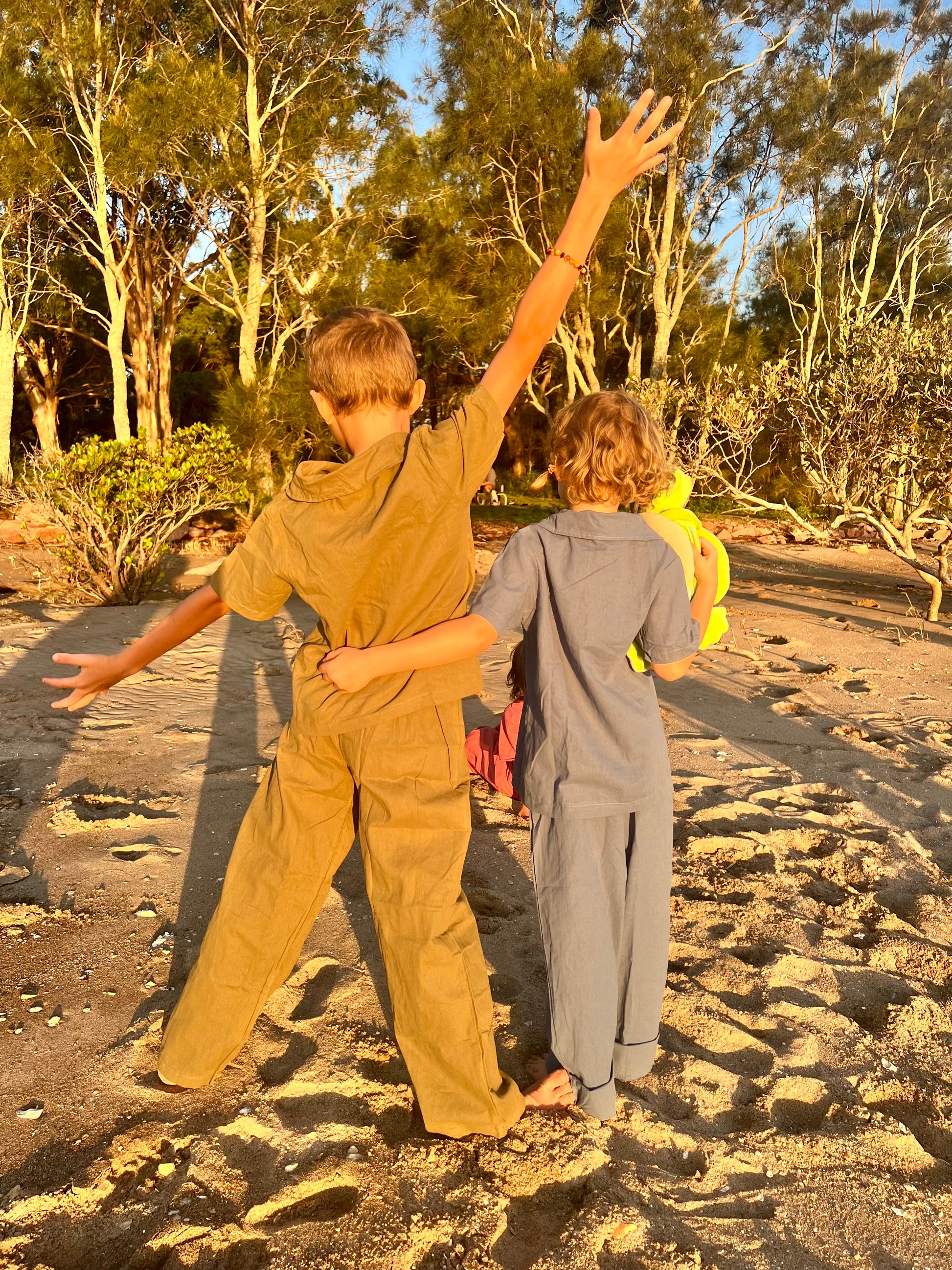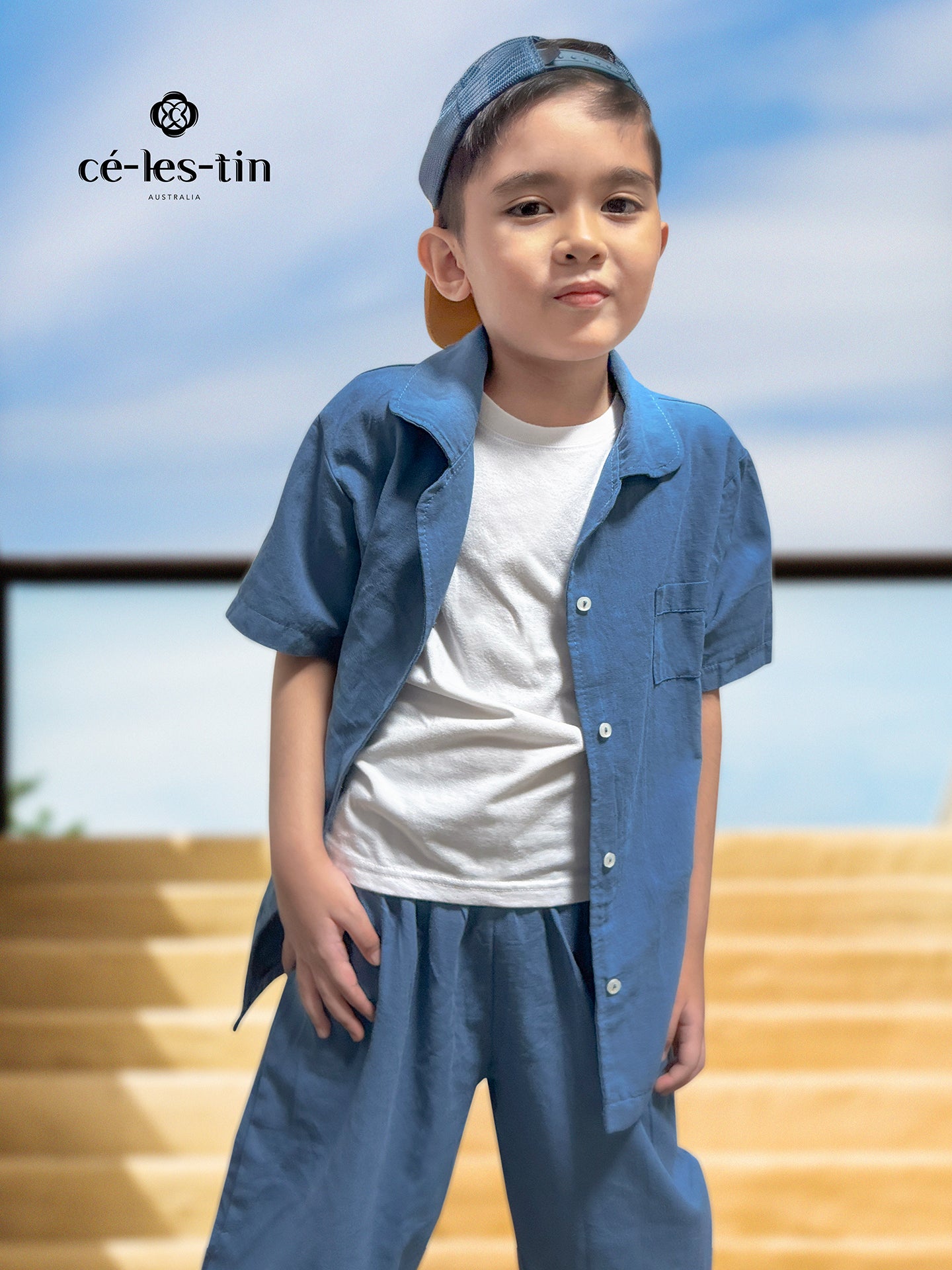 Designed for gentle days and joyful play, our signature coord set features a relaxed button-up top and comfy, elastic-waist pants. Carefully handmade using a breathable cotton-linen blend, it’s made to move with little ones from slow mornings to backyard adventures.